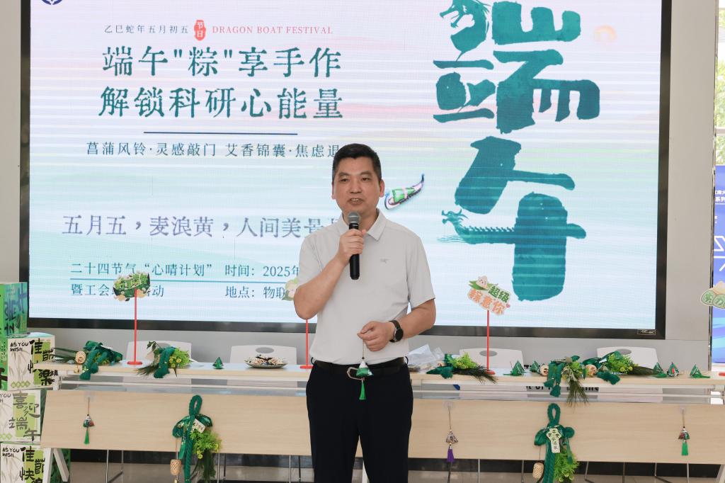 活动伊始,张华代表学院向在场师生送上节日祝福。他表示,端午是仲夏时节的传承与祈愿,是艾草飘香的时节,更是凝聚情谊的纽带,希望通过此次手作活动,让大家在指尖的创作中释放压力,在师生协作中感受温暖,共同为科研工作注入新能量!