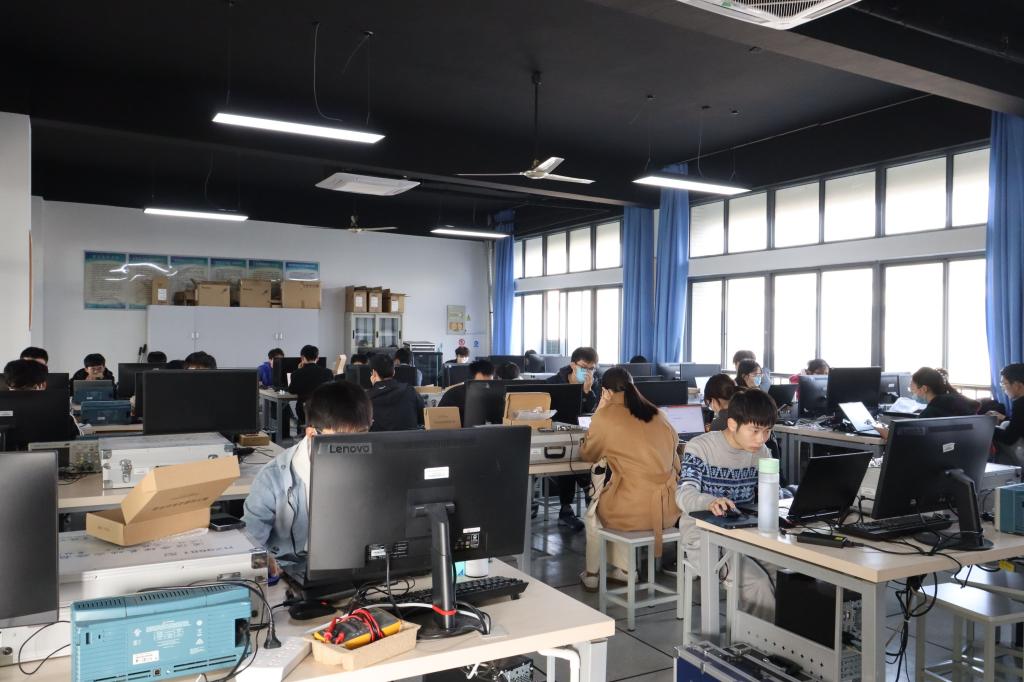 指导团队分别在嵌入式设计与开发、单片机设计与开发、EDA设计与开发、物联网设计与开发以及Python基础编程、算法设计与实现、以及实践应用能力测试等方面,针对硬件工程能力、语言编程能力、算法知识学习等开展多次集中培训,专门采购模拟竞赛平台,进行多次线上模拟备赛。通过组织校级竞赛和训练营,选拔出180余名种子参赛队员,每周开展两次集中拔高训练营,由指导团队分级分类开展一对一辅导,进一步提升了同学们的专业基础和参赛能力,营造了浓厚的学习和科创氛围。