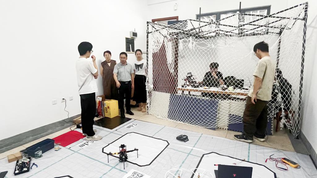 吴妍、陶洪峰一行深入各备赛实验室和科创俱乐部,实地查看了同学们的学习环境和备赛进展。在电子设计俱乐部,同学们正围绕全国大学生电子设计竞赛赛题进行电路设计与调试;在智能车俱乐部,队员们反复优化着智能车的算法与机械结构,为即将到来的全国大学生智能汽车竞赛做最后冲刺;在飞行器俱乐部,团队则同时为“挑战杯”和电子设计竞赛中的相关赛项进行着机身设计与性能验证。吴妍、陶洪峰与各参赛团队师生进行了深入交流,详细询问了备赛进度、遇到的困难以及生活保障等情况。