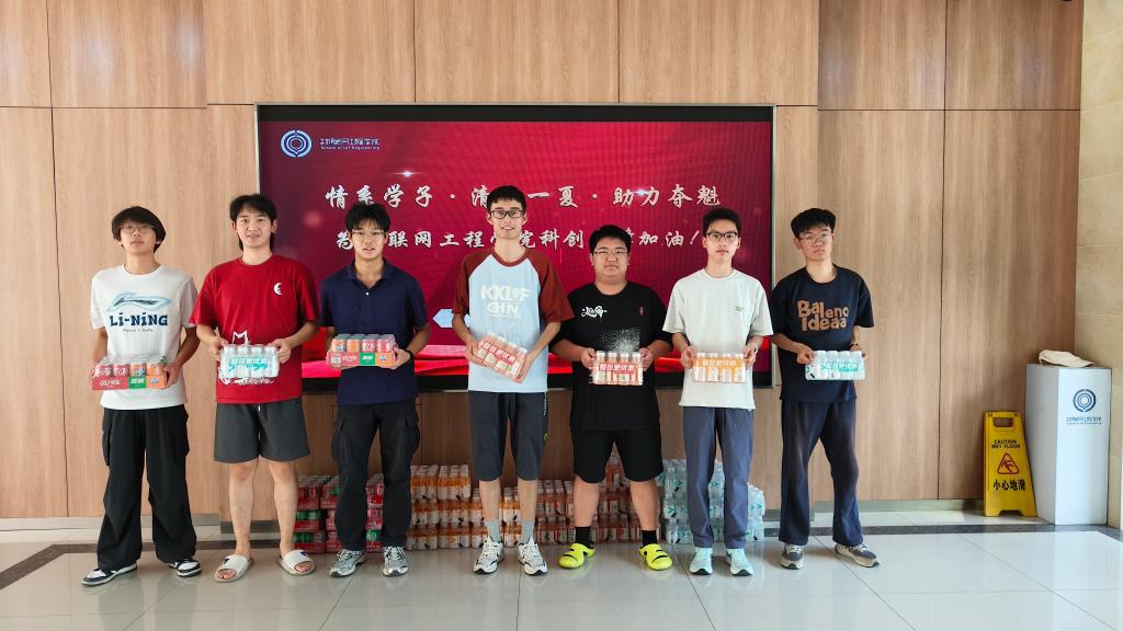 学院此行特别准备了精心购置的功能饮料、方便面、面包等实用备赛物资,逐一发放到各备赛团队手中,希望能为师生们在紧张备赛之余补充能量、带来清凉。