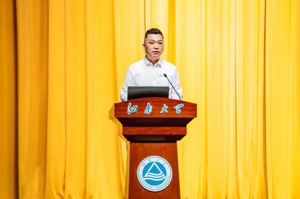 典礼最后,优秀校友李新以“以热爱铸就专业,以创新引领未来”为主题,为新生带来精彩分享。他深情回顾了自己从江大学子到企业家的奋斗历程,强调“热爱”是坚守的起点,“永争第一”是超越的动力,而“健全人格”是成就事业的基石,并分享了在工业自动化领域坚守自主创新的经验与成果。他寄语新生要珍惜大学时光,打好专业基础,勇于拼搏与探索,在家国情怀的指引下不断提升自我,把握时代机遇。