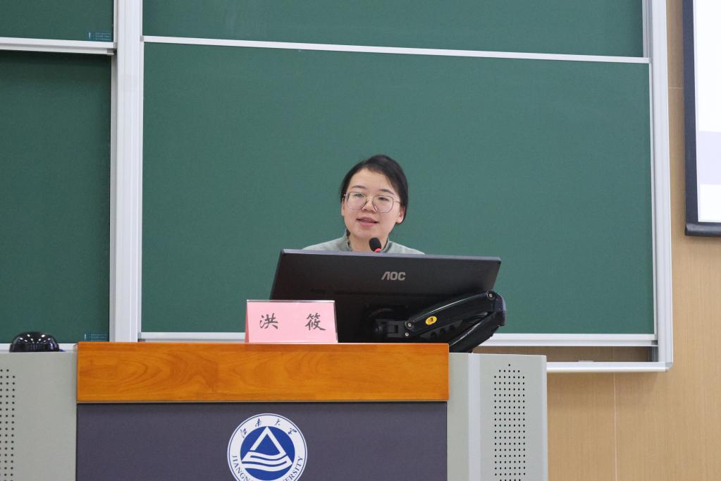 第二课堂规划板块,学院分团委书记、学工办主任洪筱针对新生综合素质培养需求,深入讲解了第二课堂制度及其重要性。她表示第二课堂是第一课堂的有益拓展与重要支撑,学院为同学们搭建了形式多样、内容充实的课外学习与实践平台,能够充分回应同学们多元化的兴趣方向与成长诉求。希望同学们借助这些丰富多样的平台,发掘并深耕个人兴趣与潜能,在实际参与中全面提升自身综合素养。