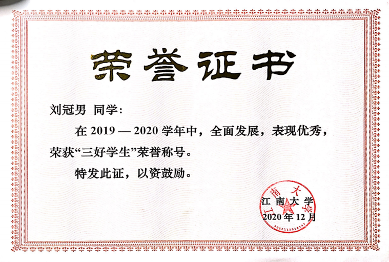 近四年的求学生涯,他一直带着“事之于成,在努力,在勤奋”的心态。一次次的挑灯夜战中,有失败的焦虑,有成功的喜悦,但更多的是孤独的煎熬。没有人是天生的赢家,大一绩点的断崖式下滑,到大二的稳定,再到大三的冲锋,一直以来的勤奋努力,使他收获了学业上的成功。总学业平均绩点3.76,软件相关课程全部取得满绩,连续三年班内综测第一,荣获国家奖学金、学业一等奖学金、金龙鱼奖学金······