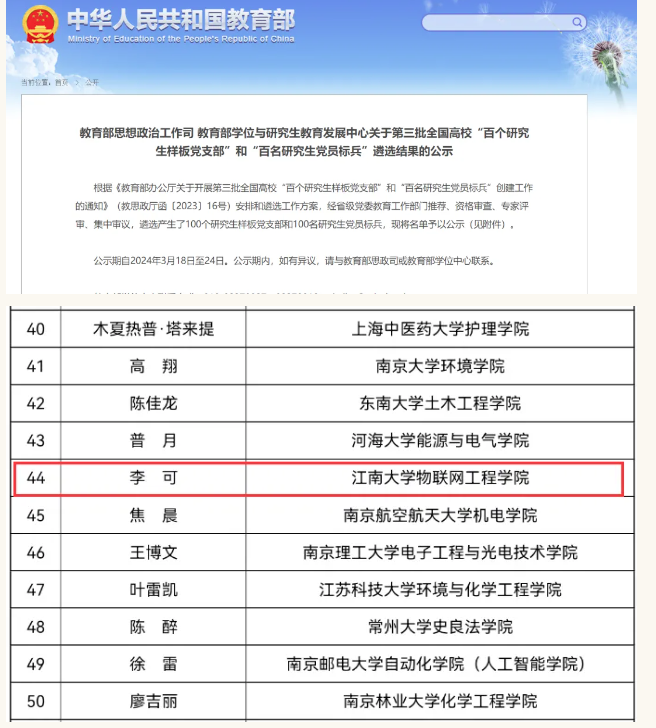 “百名研究生党员标兵”入选名单