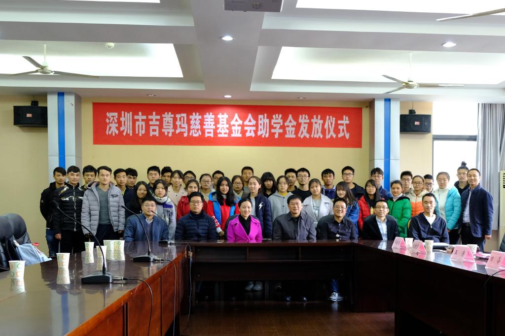 捐赠助学金,社会资源处黄敏处长向深圳市吉尊玛慈善基金会赠送锦旗,仪式在嘉宾与同学们的合影中圆满结束。同学们脸上洋溢着喜悦与感激的笑容。