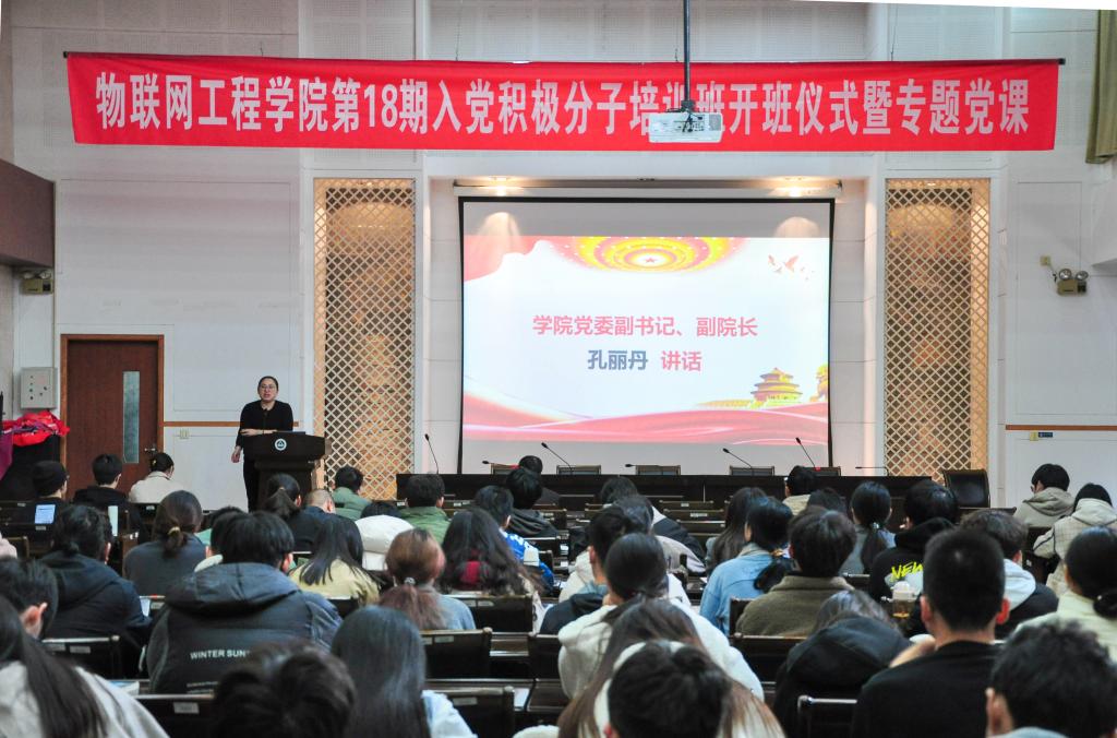 第18期入党积极分子培训班开班仪式暨专题党课在学院D328报告厅举行。学院党委副书记、副院长孔丽丹,院关工委委员赵曾贻出席开班仪式,培训班全体学员参会。开班仪式由辅导员李灿主持。